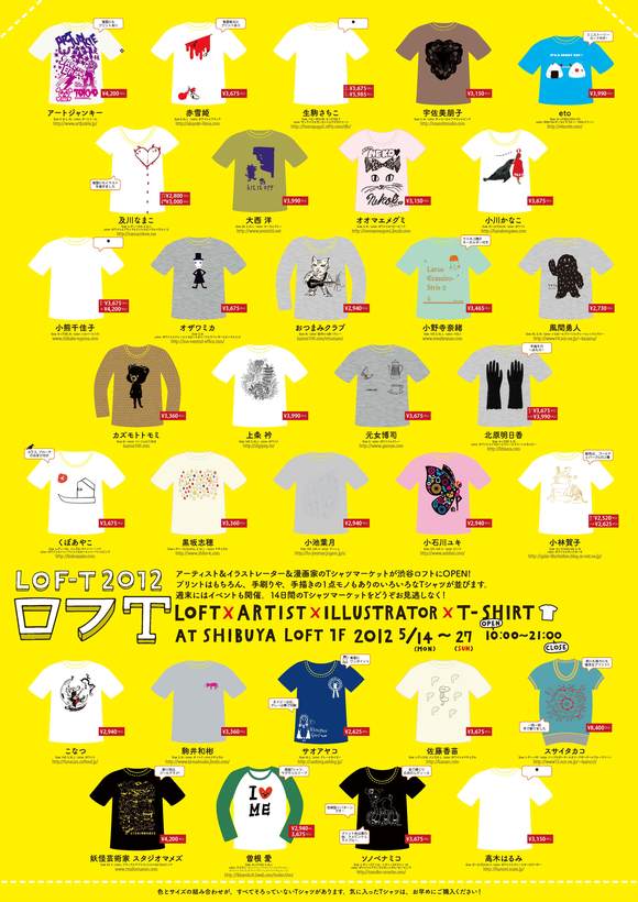 総勢65組で「ロフト」×「アーティスト」×「イラストレーター」×「漫画家」×「Tシャツ」の